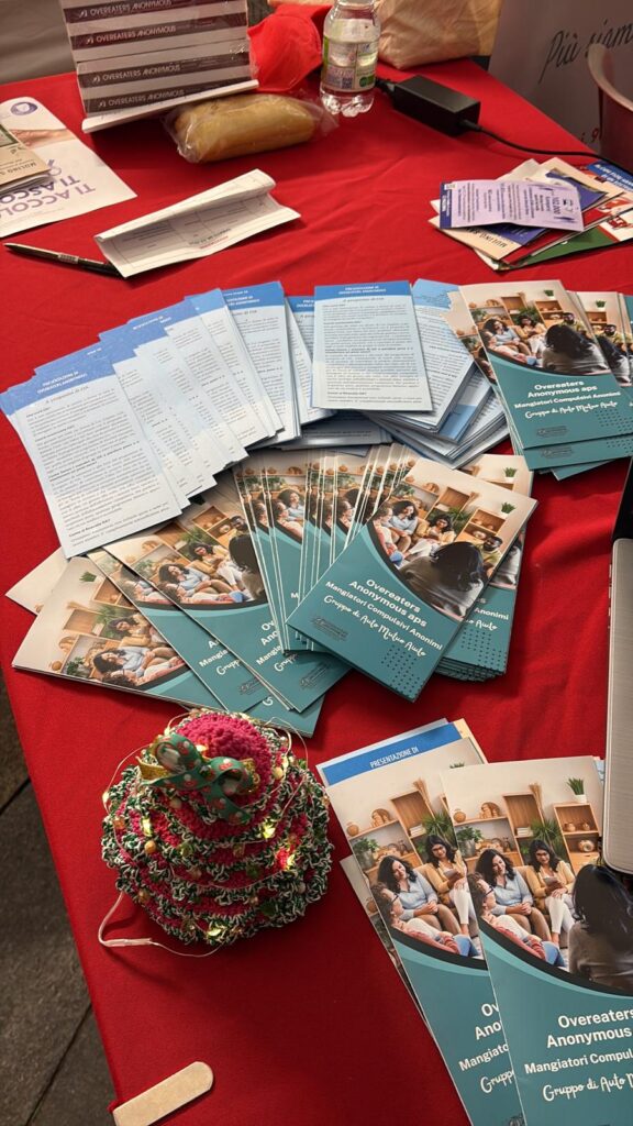Come sempre fare servizio in OA, oltre a fortificare e consolidare il desiderio di essere astinente, mi ha fatto sentire, ancora una volta, parte di un progetto più grande. Come sempre si dice, quando si fa PI: se fosse servito anche a una sola persona, venire a conoscenza dell’esistenza di questo programma di recupero dalla dipendenza da cibo, già sarebbe un successo!